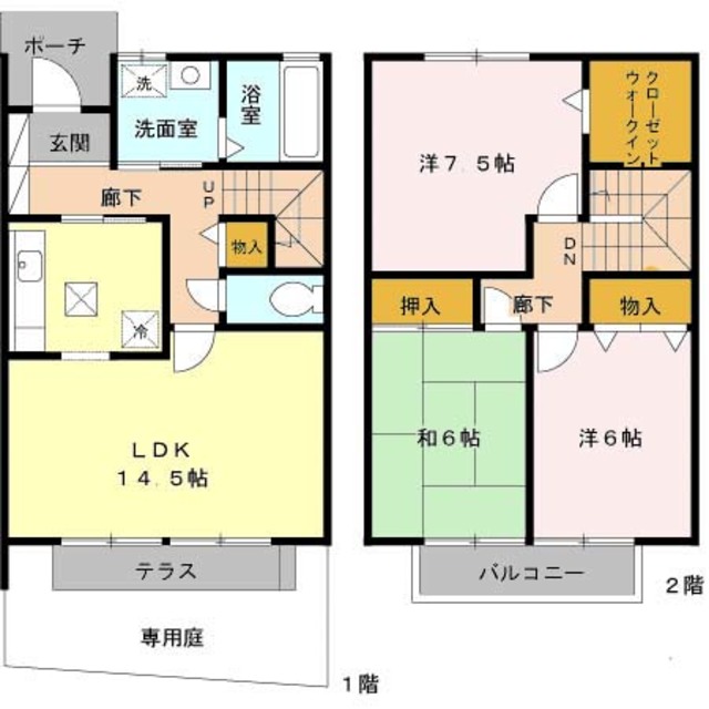 | 設備 | ■バストイレ別 ■追焚 ■洗浄便座 ■浴室乾燥機 ■洗面所独立 ■室内洗濯機置場 ■都市ガス ■メゾネット ■フローリング ■専用庭 ■バルコニー ■CATV ■BS ■駐輪場 ■ウォークインクローゼット | ||