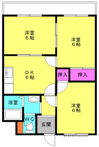 2LDK | 56.51㎡ | 1992年 3 月( 築33年) | 2階 / 3階建て |