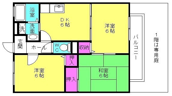 | 設備 | ■角部屋 ■バストイレ別 ■追焚 ■洗浄便座 ■洗面所独立 ■室内洗濯機置場 ■プロパンガス ■フローリング ■専用庭 ■バルコニー ■BS ■ネット使用料不要 ■駐輪場 | ||