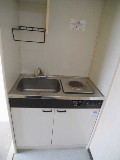 ワンルームながらバストイレ別、便利な電気コンロ、エアコン付。買い物にも便利な立地。